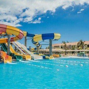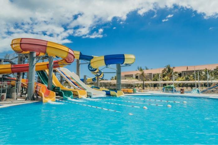 HIGHLIGHTS Located on Belle Mare along a stunning white sandy beach Large entry level rooms accommodating up to 2 adults + 2 children Aqualand with waterslides