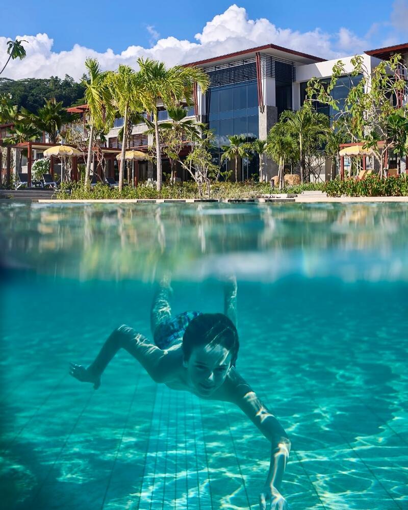 The 142 guest rooms and suites and 29 apartments are infused with local charm highlighted by a Seychelles inspired rattan canopy over the bed.