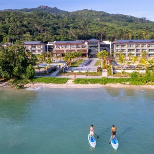 Perfectly located for adventure and relaxation, the resort overlooks the crystalline waters of Anse La Mouche on the west coast of Mahe and offers direct beach access. Here the pulsating rhythm of urban chic merges seamlessly with the inspiring allure of the islands.