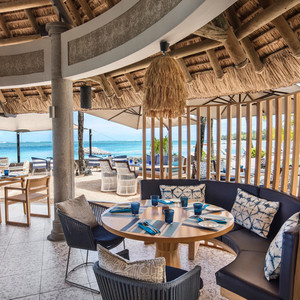Framed by the turquoise blue water of the lagoon and the swimming pool, Infinity Blue is the place to enjoy international cuisine during the lunch and Mediterranean cuisine in the evening, completely relaxed with your toes in the sand.