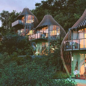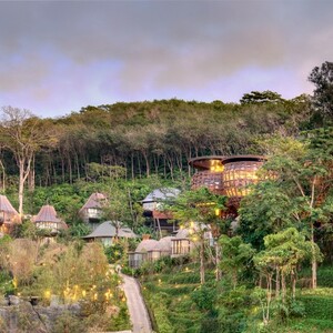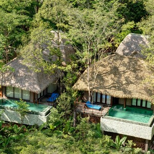 The individual villas are tucked into the tree canopy with partial sea, rainforest and resort views.