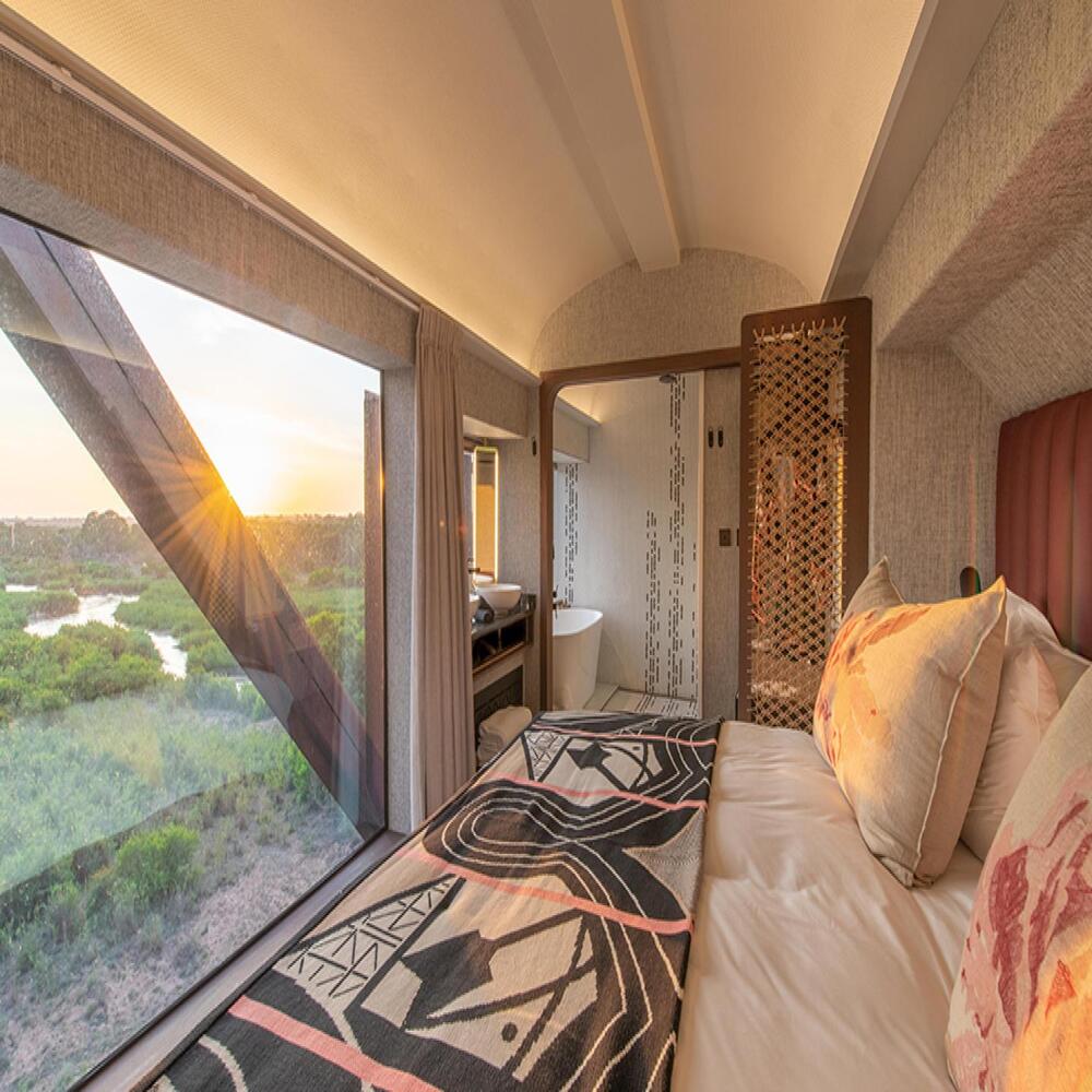 Permanently stationed on the historically rich Selati Bridge above the Sabie River, Kruger Shalati offers unique luxury accommodation in a re-envisioned train which will pay homage to the guests who explored the park nearly 100 years ago. There are 31 rooms, consisting of 24 carriage rooms and 7 land-based Bridge House rooms, each of which is designed to ensure breathtaking views and comfort, offering a one-of-a-kind experience for our guests.