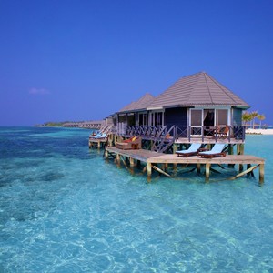 Situated over the shimmering lagoon, these enchanting villas are a haven for romantic retreats with your partner. Each features an enclosed bathroom and a secluded veranda with a private staircase leading into the ocean, perfect for breezy sunbathing and admiring the Maldives crimson sunsets.
