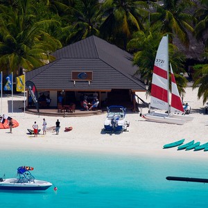 A large (by Maldivian standards) and vibey resort with 3.5 kilometres of beach and which caters for every taste - basic accommodation on the beach, a luxury villa with Jacuzzi, a secluded villa with private pool or a villa on stilts over the water.