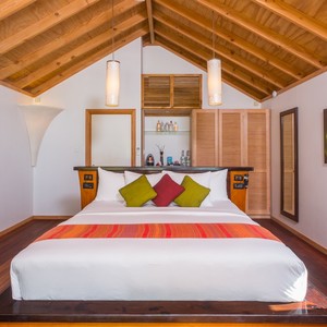 This spacious villa is equipped with a master bedroom with en suite indoor bathroom and a second bedroom which can be converted into a twin / triple room also with an indoor bathroom. Ideal for families and friends traveling together. Bedrooms connect with an interleading door. This room and its spacious layout, offers the real Kuredu experience with all your loved ones under one roof.