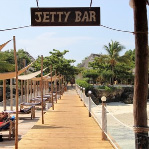 - A 300 metre long jetty with plenty of sunbeds and a bar at the end